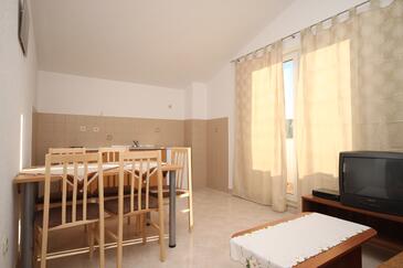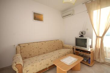 Az Apartman 5 főt tud fogadni. Az ágyak a/az 2 hálószobában, és a nappaliban/ben vannak, melynek méretei 42m2. A forró nyári estéket a vendégek saját balkonukon élvezhetik. Az apartmanból tengerre néző kilátás nyílik. A közös barbecue-helyet a vendég szabadon használhatja.