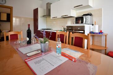 Az Apartman 5 főt tud fogadni. Az ágyak a/az 2 hálószobában, és a nappaliban/ben vannak, melynek méretei 54m2. A forró nyári estéket a vendégek saját teraszukon élvezhetik. Az apartmanból tengerre néző kilátás nyílik. A teljes élvezet és kikapcsolódás érdekében van saját barbecue hely is, csakis e szálláshely vendégei számára. A lefoglalt szállásegység teraszán áthaladnak más vendégek, vagy a tulajdonosok.