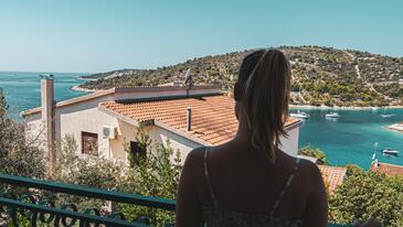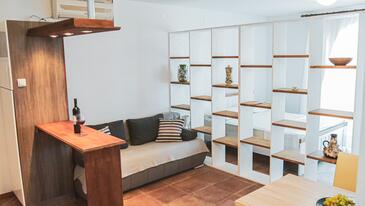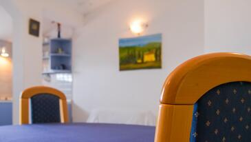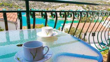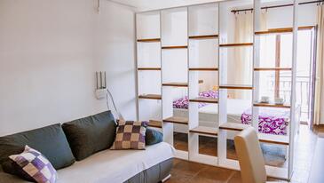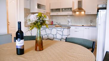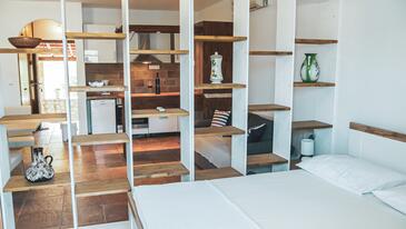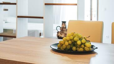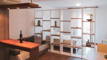 Az Apartman 5 főt tud fogadni. Az ágyak a/az 1 hálószobában, és a nappaliban/ben vannak, melynek méretei 46m2. A forró nyári estéket a vendégek saját balkonukon élvezhetik. Az apartmanból tengerre néző kilátás nyílik. A közös barbecue-helyet a vendég szabadon használhatja. A lefoglalt szállásegység közös teraszt használ..