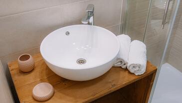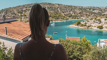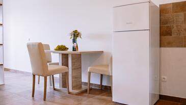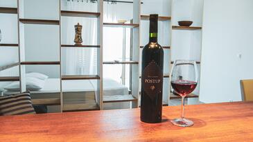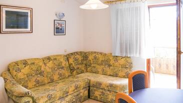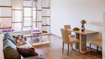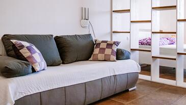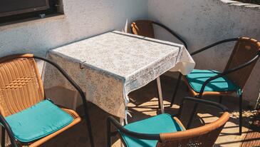 Az Apartman 5 főt tud fogadni. Az ágyak a/az 1 hálószobában, és a nappaliban/ben vannak, melynek méretei 46m2. A forró nyári estéket a vendégek saját balkonukon élvezhetik. Az apartmanból tengerre néző kilátás nyílik. A közös barbecue-helyet a vendég szabadon használhatja. A lefoglalt szállásegység közös teraszt használ..