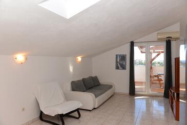 Az Apartman 6 főt tud fogadni. Az ágyak a/az 2 hálószobában, és a nappaliban/ben vannak, melynek méretei 51m2. A forró nyári estéket a vendégek saját teraszukon élvezhetik. Az apartmanból tengerre néző kilátás nyílik. A közös barbecue-helyet a vendég szabadon használhatja. A vendégek itt tartózkodásuk ideje alatt használhatják a közös medencét.