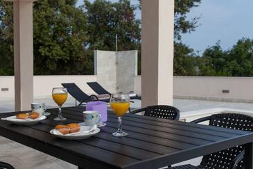 Az Ház 6 főt tud fogadni. Az ágyak a/az 2 hálószobában, és a nappaliban/ben vannak, melynek méretei 52m2. A forró nyári estéket a vendégek saját teraszukon élvezhetik. A házból tengerre néző kilátás nyílik. A teljes élvezet és kikapcsolódás érdekében van saját barbecue hely is, csakis e szálláshely vendégei számára. A vendégek itt tartózkodásuk ideje alatt kikapcsolódás céljából használhatják a magán medencét.