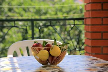 Az Apartman 6 főt tud fogadni. Az ágyak a/az 2 hálószobában vannak, melynek méretei 65m2. A forró nyári estéket a vendégek saját teraszukon élvezhetik. Az apartmanból tengerre néző kilátás nyílik. A közös barbecue-helyet a vendég szabadon használhatja.