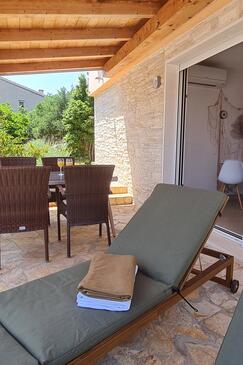 Az Apartman 3 főt tud fogadni. Az ágyak a/az 1 hálószobában vannak, melynek méretei 26m2. A forró nyári estéket a vendégek saját teraszukon élvezhetik. Az apartmanból tengerre néző kilátás nyílik. A közös barbecue-helyet a vendég szabadon használhatja.