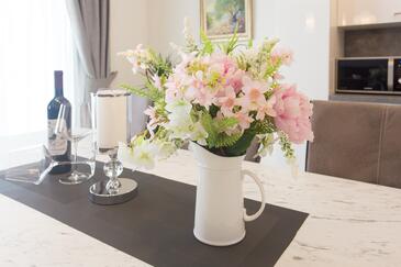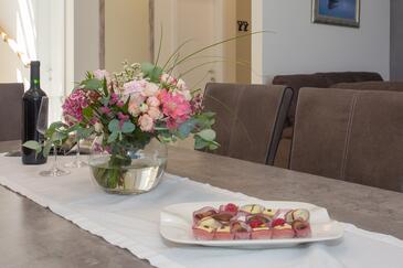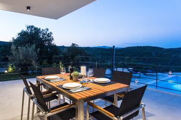 Az Ház 6 főt tud fogadni. Az ágyak a/az 3 hálószobában vannak, melynek méretei 94m2. A forró nyári estéket a vendégek saját teraszukon élvezhetik. A házból tengerre néző kilátás nyílik. A teljes élvezet és kikapcsolódás érdekében van saját barbecue hely is, csakis e szálláshely vendégei számára. A vendégek itt tartózkodásuk ideje alatt kikapcsolódás céljából használhatják a magán medencét.