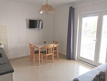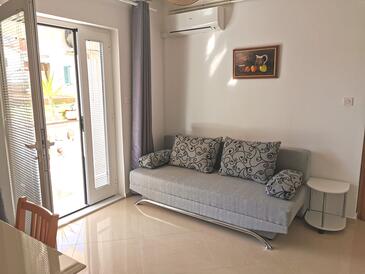 Az Apartman 4 főt tud fogadni. Az ágyak a/az 1 hálószobában, és a nappaliban/ben vannak, melynek méretei 45m2. A forró nyári estéket a vendégek saját balkonukon élvezhetik. Az apartmanból tengerre néző kilátás nyílik. A közös barbecue-helyet a vendég szabadon használhatja.