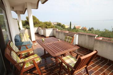 Az Apartman 6 főt tud fogadni. Az ágyak a/az 2 hálószobában, és a nappaliban/ben vannak, melynek méretei 76m2. A forró nyári estéket a vendégek saját teraszukon élvezhetik. Az apartmanból tengerre néző kilátás nyílik. A közös barbecue-helyet a vendég szabadon használhatja.