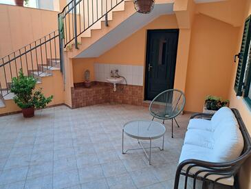 Az Apartman 6 főt tud fogadni. Az ágyak a/az 2 hálószobában, és a étkezőban/ben vannak, melynek méretei 57m2. A forró nyári estéket a vendégek saját teraszukon élvezhetik. Az apartmanból tengerre néző kilátás nyílik. A közös barbecue-helyet a vendég szabadon használhatja.