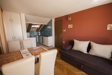 Az Apartman 4 főt tud fogadni. Az ágyak a/az 1 hálószobában, és a nappaliban/ben vannak, melynek méretei 37m2. A forró nyári estéket a vendégek saját teraszukon élvezhetik. Az apartmanból tengerre néző kilátás nyílik. A közös barbecue-helyet a vendég szabadon használhatja. A szállásegységbe lehetséges háziállatot hozni felár ellenében.