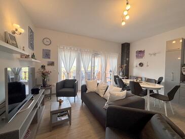 Az Apartman 4 főt tud fogadni. Az ágyak a/az 2 hálószobában vannak, melynek méretei 54m2. A forró nyári estéket a vendégek saját teraszukon élvezhetik. Az apartmanból tengerre néző kilátás nyílik. A közös barbecue-helyet a vendég szabadon használhatja. A lefoglalt szállásegység vendégeinek az érkezés napján a helyszínen letétet kell fizetniük (az összeg a honlapon fel van tüntetve).