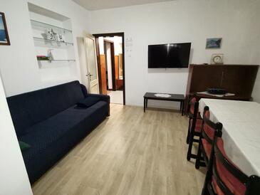 Az Apartman 5 főt tud fogadni. Az ágyak a/az 2 hálószobában vannak, melynek méretei 62m2. A forró nyári estéket a vendégek saját teraszukon élvezhetik. Az apartmanból tengerre néző kilátás nyílik. A közös barbecue-helyet a vendég szabadon használhatja.