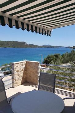 Az Apartman 4 főt tud fogadni. Az ágyak a/az 1 hálószobában, és a nappaliban/ben vannak, melynek méretei 48m2. A forró nyári estéket a vendégek saját teraszukon élvezhetik. Az apartmanból tengerre néző kilátás nyílik. A közös barbecue-helyet a vendég szabadon használhatja. A szállásegységbe lehetséges háziállatot hozni, ennek költségét a foglalási díj tartalmazza.