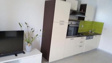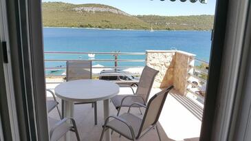 Az Apartman 4 főt tud fogadni. Az ágyak a/az 1 hálószobában, és a nappaliban/ben vannak, melynek méretei 48m2. A forró nyári estéket a vendégek saját teraszukon élvezhetik. Az apartmanból tengerre néző kilátás nyílik. A közös barbecue-helyet a vendég szabadon használhatja. A szállásegységbe lehetséges háziállatot hozni, ennek költségét a foglalási díj tartalmazza.
