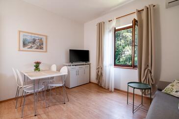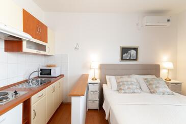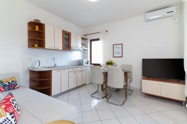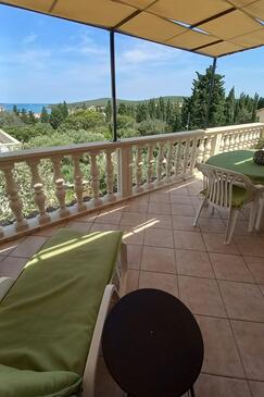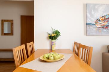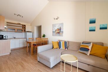 Az Apartman 5 főt tud fogadni. Az ágyak a/az 2 hálószobában, és a nappaliban/ben vannak, melynek méretei 49m2. A forró nyári estéket a vendégek saját teraszukon élvezhetik. Az apartmanból tengerre néző kilátás nyílik. A közös barbecue-helyet a vendég szabadon használhatja.