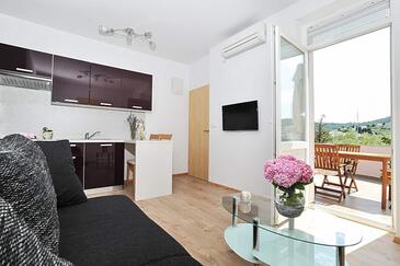 Az Apartman 4 főt tud fogadni. Az ágyak a/az 1 hálószobában, és a nappaliban/ben vannak, melynek méretei 54m2. A forró nyári estéket a vendégek saját teraszukon élvezhetik. Az apartmanból tengerre néző kilátás nyílik. A közös barbecue-helyet a vendég szabadon használhatja.