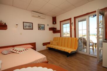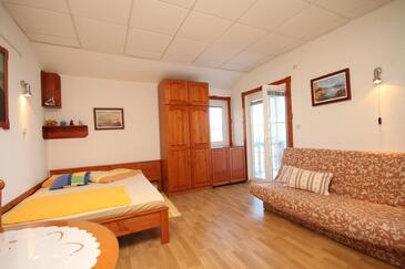 Az Stúdió 3 főt tud fogadni. Az ágyak a/az 1 hálószobában vannak, melynek méretei 20m2. A forró nyári estéket a vendégek saját teraszukon élvezhetik. A stúdióból tengerre néző kilátás nyílik. A teljes élvezet és kikapcsolódás érdekében van saját barbecue hely is, csakis e szálláshely vendégei számára.