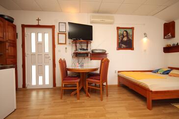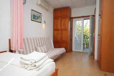 Az Stúdió 3 főt tud fogadni. Az ágyak a/az 1 hálószobában vannak, melynek méretei 20m2. A forró nyári estéket a vendégek saját teraszukon élvezhetik. A stúdióból tengerre néző kilátás nyílik. A teljes élvezet és kikapcsolódás érdekében van saját barbecue hely is, csakis e szálláshely vendégei számára.