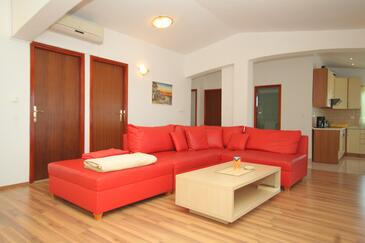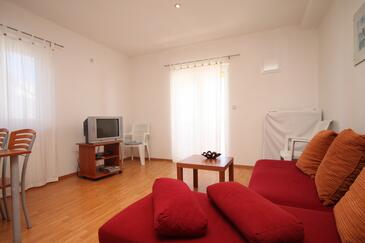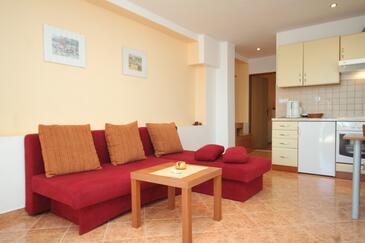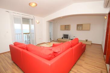 Az Apartman 4 főt tud fogadni. Az ágyak a/az 1 hálószobában, és a nappaliban/ben vannak, melynek méretei 39m2. A forró nyári estéket a vendégek saját teraszukon élvezhetik. Az apartmanból tengerre néző kilátás nyílik. A közös barbecue-helyet a vendég szabadon használhatja. A szállásegységbe lehetséges háziállatot hozni felár ellenében.