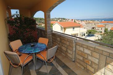 Az Apartman 5 főt tud fogadni. Az ágyak a/az 2 hálószobában, és a nappaliban/ben vannak, melynek méretei 54m2. A forró nyári estéket a vendégek saját teraszukon élvezhetik. Az apartmanból tengerre néző kilátás nyílik. A közös barbecue-helyet a vendég szabadon használhatja.