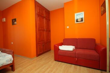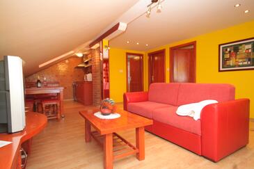 Az Apartman 5 főt tud fogadni. Az ágyak a/az 2 hálószobában, és a nappaliban/ben vannak, melynek méretei 54m2. A forró nyári estéket a vendégek saját teraszukon élvezhetik. Az apartmanból tengerre néző kilátás nyílik. A közös barbecue-helyet a vendég szabadon használhatja.