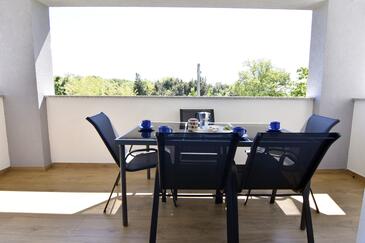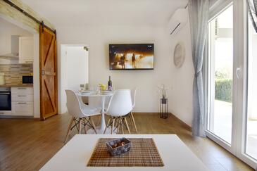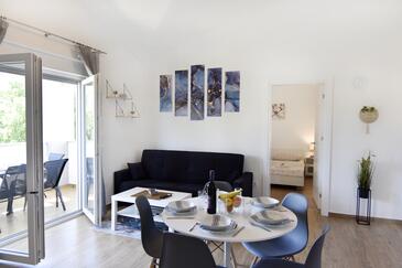 Az Apartman 5 főt tud fogadni. Az ágyak a/az 2 hálószobában, és a nappaliban/ben vannak, melynek méretei 52m2. A forró nyári estéket a vendégek saját teraszukon élvezhetik. A közös barbecue-helyet a vendég szabadon használhatja. A vendégek itt tartózkodásuk ideje alatt használhatják a közös medencét.