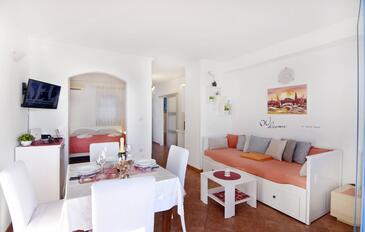 Az Apartman 3 főt tud fogadni. Az ágyak a/az 1 hálószobában, és a nappaliban/ben vannak, melynek méretei 31m2. A forró nyári estéket a vendégek saját teraszukon élvezhetik. Az apartmanból tengerre néző kilátás nyílik. A közös barbecue-helyet a vendég szabadon használhatja.