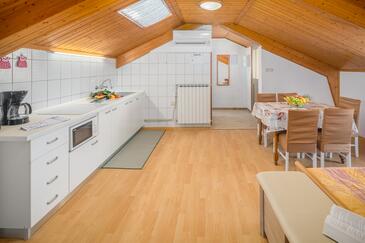 Az Apartman 4 főt tud fogadni. Az ágyak a/az 2 hálószobában vannak, melynek méretei 43m2. A forró nyári estéket a vendégek saját teraszukon élvezhetik. Az apartmanból tengerre néző kilátás nyílik. A szállásegységbe lehetséges háziállatot hozni felár ellenében. A lefoglalt szállásegység teraszán áthaladnak más vendégek, vagy a tulajdonosok.