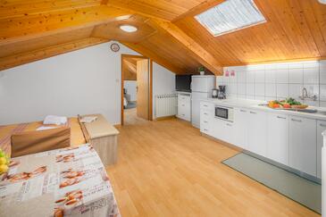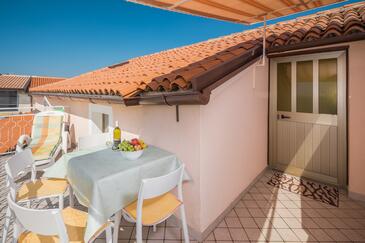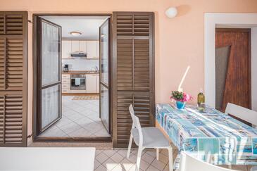 Az Apartman 4 főt tud fogadni. Az ágyak a/az 2 hálószobában vannak, melynek méretei 43m2. A forró nyári estéket a vendégek saját teraszukon élvezhetik. Az apartmanból tengerre néző kilátás nyílik. A szállásegységbe lehetséges háziállatot hozni felár ellenében. A lefoglalt szállásegység teraszán áthaladnak más vendégek, vagy a tulajdonosok.