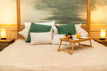 Az Apartman 4 főt tud fogadni. Az ágyak a/az 1 hálószobában, és a nappaliban/ben vannak, melynek méretei 51m2. A forró nyári estéket a vendégek saját teraszukon élvezhetik. A közös barbecue-helyet a vendég szabadon használhatja.