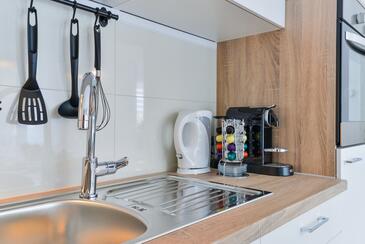 Az Apartman 4 főt tud fogadni. Az ágyak a/az 1 hálószobában, és a nappaliban/ben vannak, melynek méretei 59m2. A forró nyári estéket a vendégek saját balkonukon élvezhetik. Az apartmanból tengerre néző kilátás nyílik. A közös barbecue-helyet a vendég szabadon használhatja. A vendégek itt tartózkodásuk ideje alatt használhatják a közös medencét.