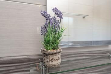 Az Apartman 6 főt tud fogadni. Az ágyak a/az 3 hálószobában vannak, melynek méretei 69m2. A forró nyári estéket a vendégek saját teraszukon élvezhetik. Az apartmanból tengerre néző kilátás nyílik. A közös barbecue-helyet a vendég szabadon használhatja. A lefoglalt szállásegység vendégeinek az érkezés napján a helyszínen letétet kell fizetniük (az összeg a honlapon fel van tüntetve).