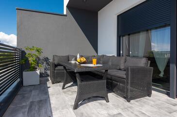 Az Apartman 5 főt tud fogadni. Az ágyak a/az 2 hálószobában, és a nappaliban/ben vannak, melynek méretei 68m2. A forró nyári estéket a vendégek saját teraszukon élvezhetik. Az apartmanból tengerre néző kilátás nyílik. A közös barbecue-helyet a vendég szabadon használhatja.