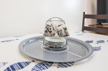 Az Apartman 6 főt tud fogadni. Az ágyak a/az 2 hálószobában, és a nappaliban/ben vannak, melynek méretei 65m2. A forró nyári estéket a vendégek saját balkonukon élvezhetik. Az apartmanból tengerre néző kilátás nyílik. A közös barbecue-helyet a vendég szabadon használhatja.