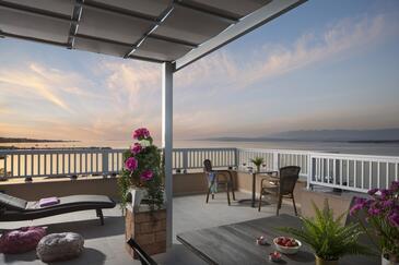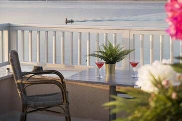 Az Apartman 4 főt tud fogadni. Az ágyak a/az 2 hálószobában vannak, melynek méretei 50m2. A forró nyári estéket a vendégek saját teraszukon élvezhetik. Az apartmanból tengerre néző kilátás nyílik. A közös barbecue-helyet a vendég szabadon használhatja.