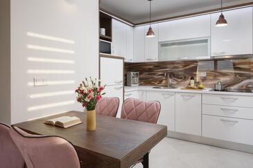 Az Apartman 4 főt tud fogadni. Az ágyak a/az 2 hálószobában vannak, melynek méretei 50m2. A forró nyári estéket a vendégek saját teraszukon élvezhetik. Az apartmanból tengerre néző kilátás nyílik. A közös barbecue-helyet a vendég szabadon használhatja.