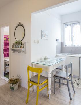 Az Apartman 2 főt tud fogadni. Az ágyak a/az 1 hálószobában vannak, melynek méretei 46m2. A forró nyári estéket a vendégek saját teraszukon élvezhetik. A közös barbecue-helyet a vendég szabadon használhatja. A szállásegységbe lehetséges háziállatot hozni, ennek költségét a foglalási díj tartalmazza.