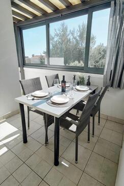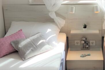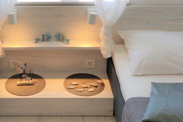 Az Apartman 4 főt tud fogadni. Az ágyak a/az 2 hálószobában vannak, melynek méretei 42m2. A forró nyári estéket a vendégek saját teraszukon élvezhetik. Az apartmanból tengerre néző kilátás nyílik. A közös barbecue-helyet a vendég szabadon használhatja.