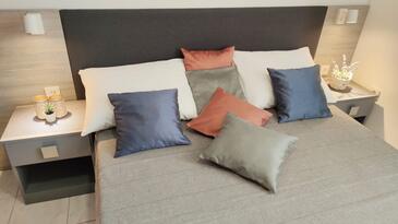 Az Apartman 4 főt tud fogadni. Az ágyak a/az 2 hálószobában vannak, melynek méretei 50m2. A forró nyári estéket a vendégek saját teraszukon élvezhetik. Az apartmanból tengerre néző kilátás nyílik. A közös barbecue-helyet a vendég szabadon használhatja.