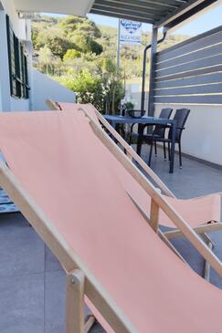 Az Apartman 4 főt tud fogadni. Az ágyak a/az 2 hálószobában vannak, melynek méretei 42m2. A forró nyári estéket a vendégek saját teraszukon élvezhetik. Az apartmanból tengerre néző kilátás nyílik. A közös barbecue-helyet a vendég szabadon használhatja.
