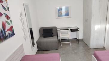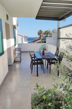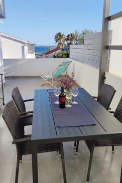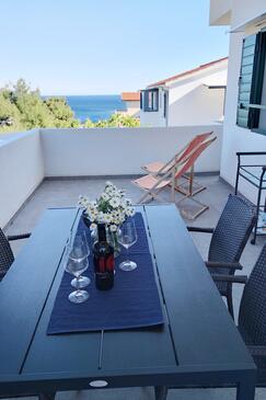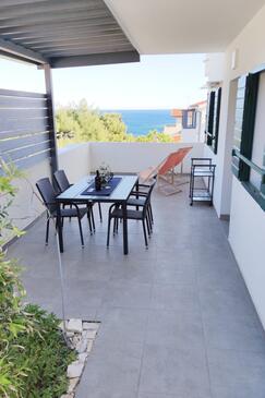 Az Apartman 4 főt tud fogadni. Az ágyak a/az 2 hálószobában vannak, melynek méretei 42m2. A forró nyári estéket a vendégek saját teraszukon élvezhetik. Az apartmanból tengerre néző kilátás nyílik. A közös barbecue-helyet a vendég szabadon használhatja.