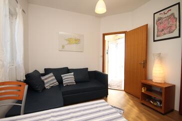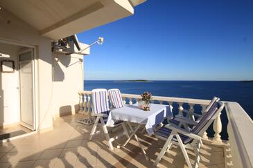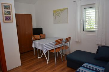 Az Apartman 4 főt tud fogadni. Az ágyak a/az 2 hálószobában vannak, melynek méretei 35m2. A forró nyári estéket a vendégek saját teraszukon élvezhetik. Az apartmanból tengerre néző kilátás nyílik. A közös barbecue-helyet a vendég szabadon használhatja. A szállásegységbe lehetséges háziállatot hozni, ennek költségét a foglalási díj tartalmazza.
