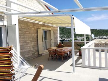 Az Apartman 4 főt tud fogadni. Az ágyak a/az 2 hálószobában vannak, melynek méretei 69m2. A forró nyári estéket a vendégek saját teraszukon élvezhetik. Az apartmanból tengerre néző kilátás nyílik. A közös barbecue-helyet a vendég szabadon használhatja.