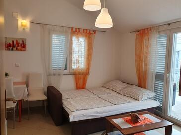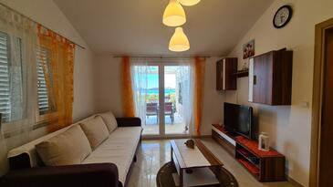 Az Apartman 4 főt tud fogadni. Az ágyak a/az 1 hálószobában, és a nappaliban/ben vannak, melynek méretei 26m2. A forró nyári estéket a vendégek saját teraszukon élvezhetik. Az apartmanból tengerre néző kilátás nyílik. A közös barbecue-helyet a vendég szabadon használhatja. A lefoglalt szállásegység bizonyos helyiségei nem összekötöttek. A szállásegység egyes helyiségei elkülönülnek a szállásegység többi részétől.