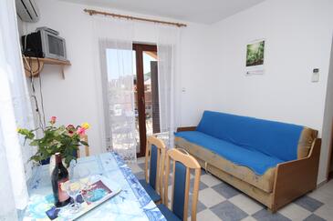 Az Apartman 6 főt tud fogadni. Az ágyak a/az 2 hálószobában, és a nappaliban/ben vannak, melynek méretei 50m2. A forró nyári estéket a vendégek saját teraszukon élvezhetik. Az apartmanból tengerre néző kilátás nyílik. A közös barbecue-helyet a vendég szabadon használhatja. A szállásegységbe lehetséges háziállatot hozni felár ellenében.