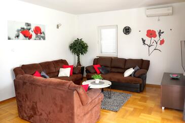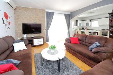 Az Apartman 7 főt tud fogadni. Az ágyak a/az 3 hálószobában, és a nappaliban/ben vannak, melynek méretei 90m2. A forró nyári estéket a vendégek saját teraszukon élvezhetik. A közös barbecue-helyet a vendég szabadon használhatja. A szállásegységbe lehetséges háziállatot hozni, ennek költségét a foglalási díj tartalmazza.