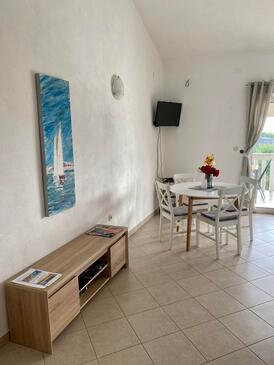Az Apartman 4 főt tud fogadni. Az ágyak a/az 1 hálószobában, és a nappaliban/ben vannak, melynek méretei 52m2. A forró nyári estéket a vendégek saját teraszukon élvezhetik. Az apartmanból tengerre néző kilátás nyílik. A közös barbecue-helyet a vendég szabadon használhatja.