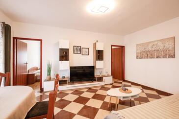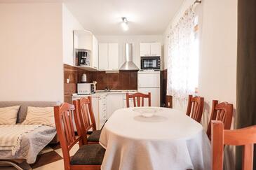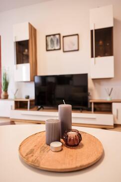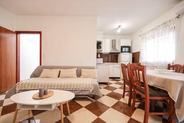 Az Apartman 6 főt tud fogadni. Az ágyak a/az 2 hálószobában, és a nappaliban/ben vannak, melynek méretei 47m2. A forró nyári estéket a vendégek saját teraszukon élvezhetik. Az apartmanból tengerre néző kilátás nyílik. A közös barbecue-helyet a vendég szabadon használhatja. A szállásegységbe lehetséges háziállatot hozni, ennek költségét a foglalási díj tartalmazza.