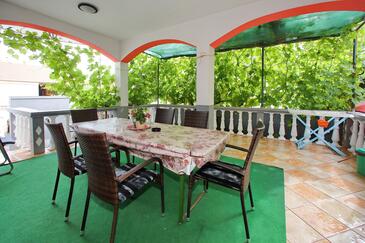 Az Apartman 5 főt tud fogadni. Az ágyak a/az 2 hálószobában vannak, melynek méretei 82m2. A forró nyári estéket a vendégek saját teraszukon élvezhetik. Az apartmanból tengerre néző kilátás nyílik. A közös barbecue-helyet a vendég szabadon használhatja.