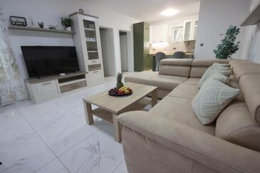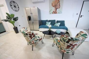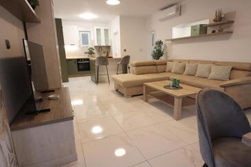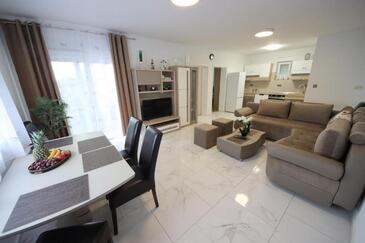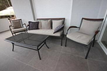 Az Apartman 5 főt tud fogadni. Az ágyak a/az 2 hálószobában, és a nappaliban/ben vannak, melynek méretei 57m2. A forró nyári estéket a vendégek saját teraszukon élvezhetik. A közös barbecue-helyet a vendég szabadon használhatja.