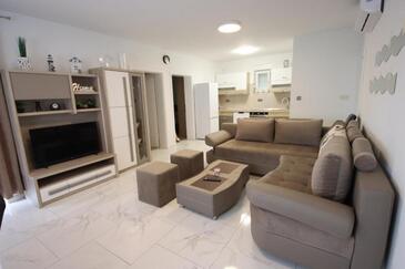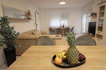 Az Apartman 5 főt tud fogadni. Az ágyak a/az 2 hálószobában, és a nappaliban/ben vannak, melynek méretei 57m2. A forró nyári estéket a vendégek saját teraszukon élvezhetik. A közös barbecue-helyet a vendég szabadon használhatja.